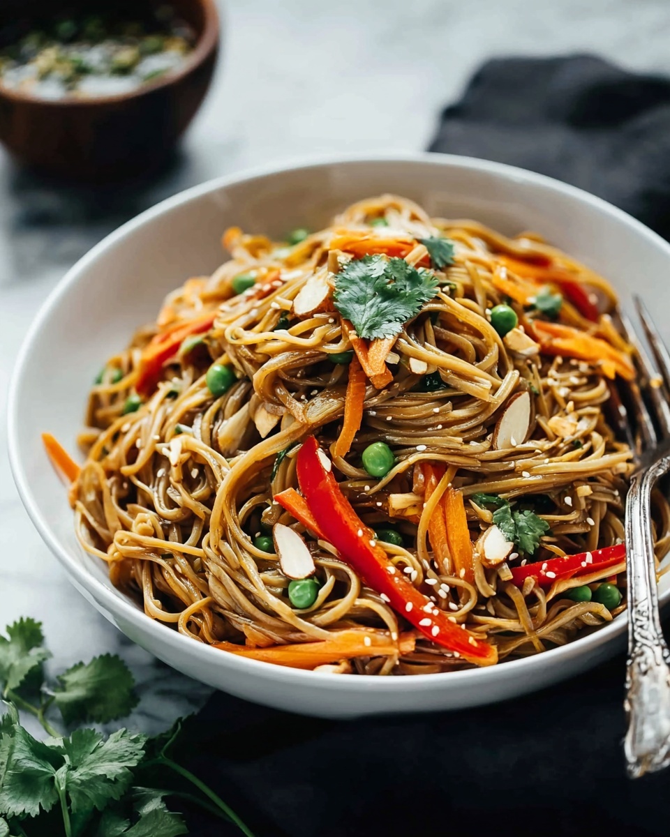 Feeling a little fancy? Serve your Spicy Peanut Soba Noodle Salad Recipe in individual glass jars or pretty bowls layered with noodles, veggies, chicken, and sauce for a stunning presentation. For a casual gathering, pile it high on a large platter with extra herbs and peanuts scattered around—this communal style invites everyone to dig in and share the goodness.