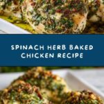 This Spinach Herb Baked Chicken recipe features juicy boneless, skinless chicken breasts stuffed with a flavorful mixture of fresh spinach, feta cheese, cream cheese, Parmesan, and aromatic herbs. The chicken is seared to golden perfection on the stovetop before being baked until tender and juicy. It’s a delicious and wholesome meal perfect for a family dinner or meal prep.