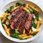 This Steak Pasta with Creamy Garlic Sauce is a rich and flavorful dish that combines tender pan-seared steak with al dente penne pasta tossed in a luscious creamy garlic sauce. Enhanced with sundried tomatoes, fresh spinach, and a hint of roasted green chile, this recipe delivers a perfect balance of hearty and fresh flavors, ideal for a satisfying weeknight dinner or special occasion.