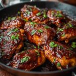 This Sticky Guinness Chicken recipe features tender, boneless chicken thighs cooked in a rich, flavorful Guinness stout sauce with brown sugar, soy sauce, and aromatic spices. The slow simmering process creates a luscious, sticky glaze perfect for serving over mashed potatoes, rice, or roasted vegetables. A delicious Irish-inspired comfort dish that’s easy to prepare and bursting with umami goodness.