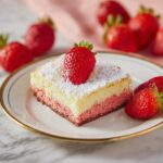 This Strawberry Butter Cake is a delightful dessert featuring a moist strawberry cake base topped with a creamy, tangy cream cheese layer. Finished with a dusting of powdered sugar and fresh sliced strawberries, this cake offers a perfect balance of sweetness and fresh fruit flavor, ideal for any occasion.