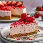 Wrap leftover cheesecake tightly with plastic wrap or transfer to an airtight container and store in the fridge. It will keep beautifully for up to 4 days, maintaining that creamy texture and fresh strawberry crunch.