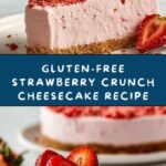 This Strawberry Crunch Cheesecake combines a gluten-free graham cracker crust with a rich, creamy cheesecake filling, topped with crunchy freeze-dried strawberry flakes and fresh strawberry slices. Baked to perfection, this dessert offers a luscious creamy texture contrasted by the delightful crunch and fresh fruit topping, making it an ideal treat for gatherings or special occasions.