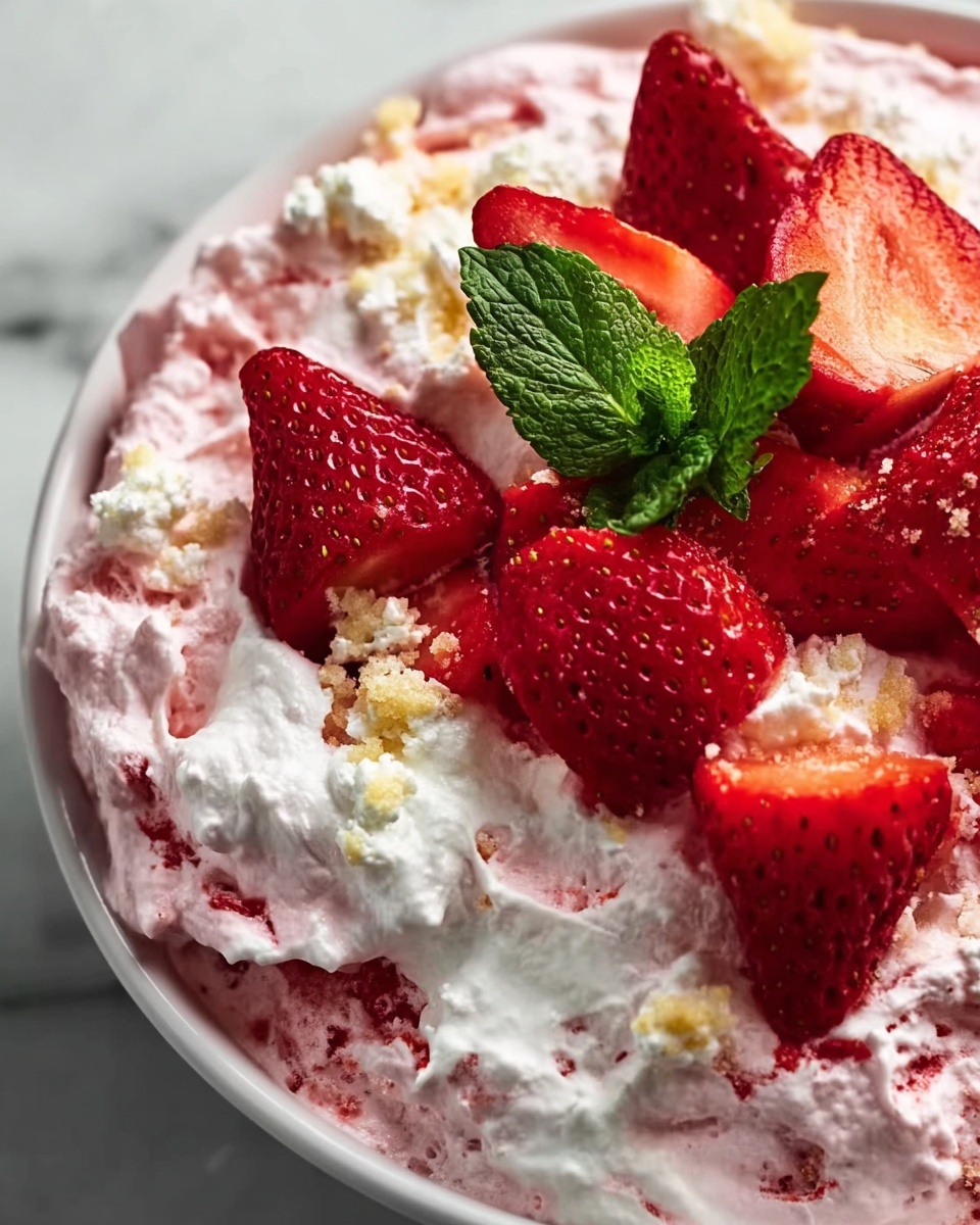 Transfer your creamy base into a serving bowl, then fold in the chopped strawberries, saving a few fresh pieces for garnish. This final mix ensures every spoonful is packed with that fresh strawberry goodness that makes this recipe sing.