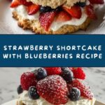 A delightful Strawberry Shortcake with Blueberries recipe featuring tender homemade biscuits layered with fresh strawberries, blueberries, and sweetened whipped cream. Perfect for a light, fruity dessert or afternoon treat that serves 8 people.
