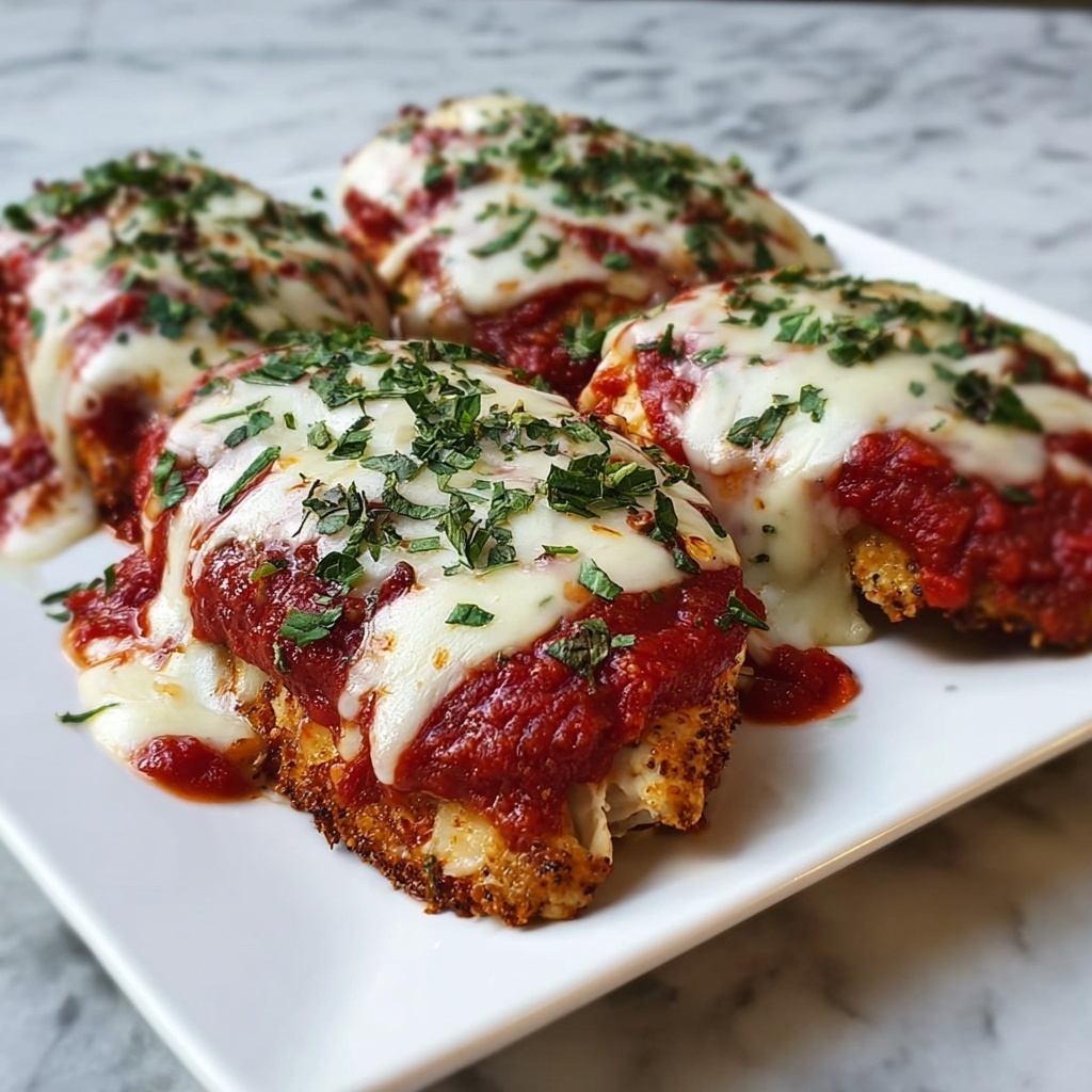A delightful stuffed chicken Parmesan recipe featuring tender chicken breasts filled with a flavorful blend of mozzarella, Parmesan, fresh basil, and garlic, coated with crispy breadcrumbs and baked to golden perfection. This easy-to-make dish brings classic Italian flavors to your dinner table in just under an hour.