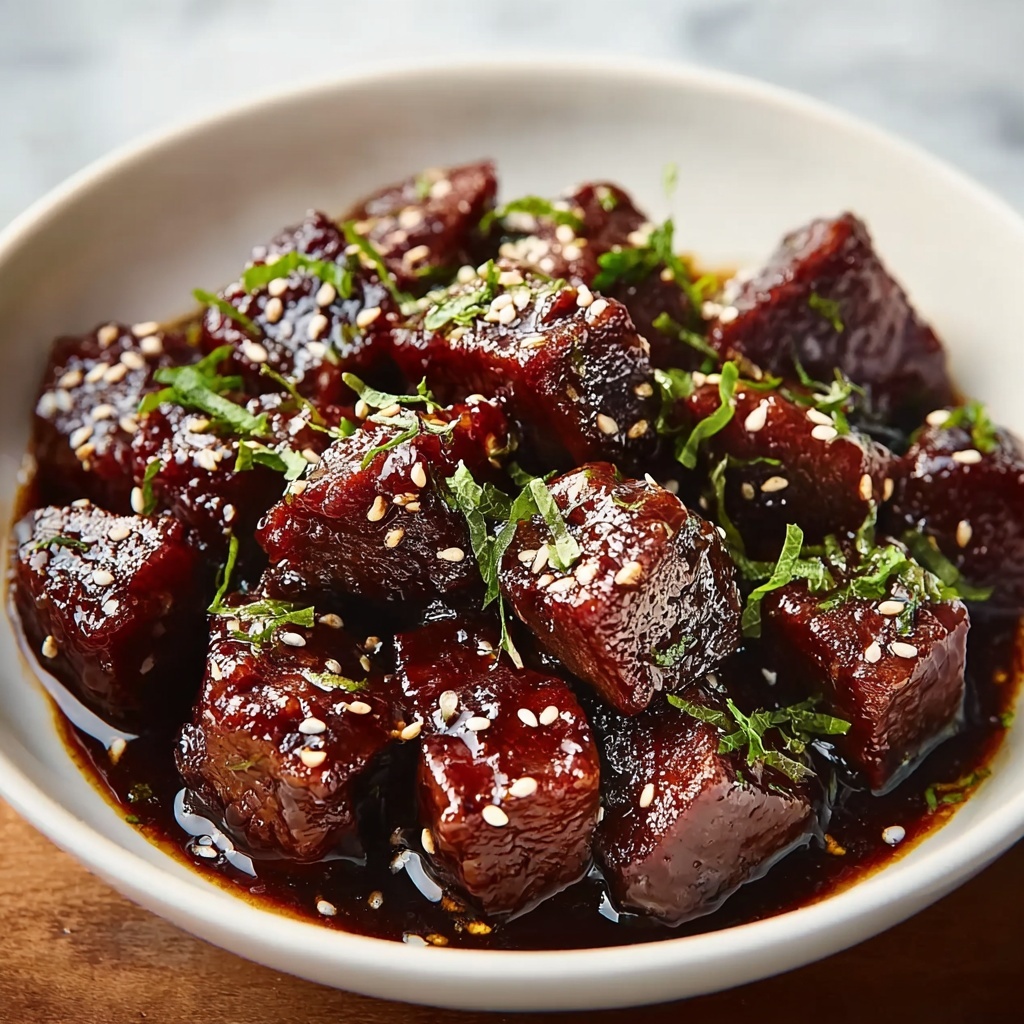 Sweet and Sticky Steak Bites are a quick and delicious dish featuring tender sirloin or flank steak cubes seared to perfection and tossed in a luscious honey-soy glaze. This recipe combines savory, sweet, and aromatic flavors with a simple yet effective cooking technique, making it a perfect weeknight dinner served over rice or vegetables.