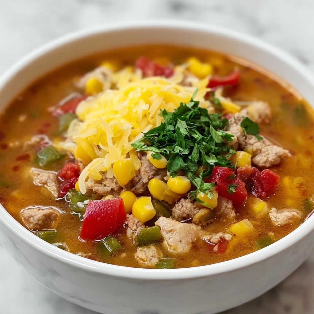 The fun part of serving Taco Soup Recipe is piling on the garnishes that add texture and extra flavor layers. Think shredded cheddar or Monterey Jack cheese for gooey richness, a dollop of sour cream to cool the spice, diced avocado for creaminess, crunchy tortilla chips for irresistible crunch, or sliced green onions for a sharp, fresh bite. These toppings transform a humble bowl of soup into a feast for both the eyes and taste buds.