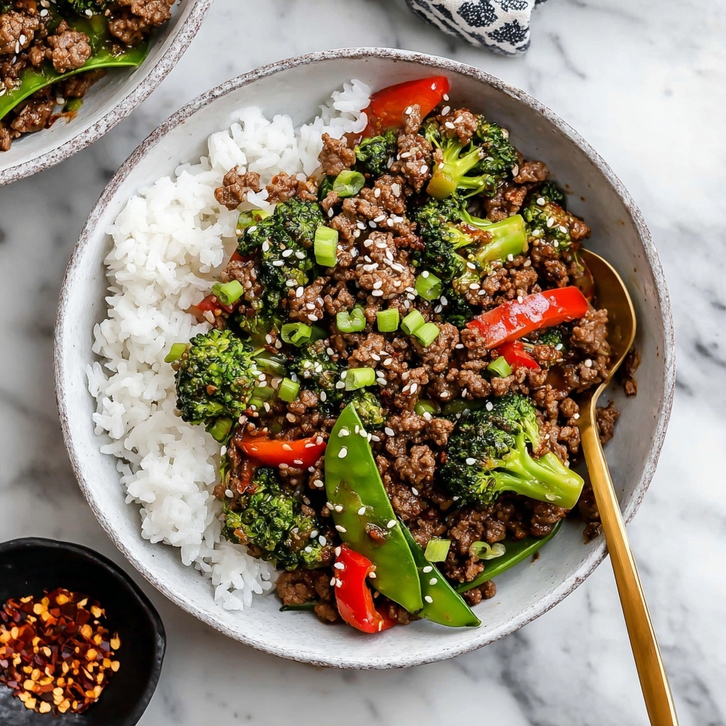 This Teriyaki Beef Bowls recipe features savory ground beef and crisp-tender vegetables coated in a homemade teriyaki sauce, served over fluffy rice for a quick and flavorful weeknight meal.