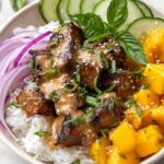 If you are craving a vibrant, fresh meal that’s bursting with flavor and a perfect balance of sweet, savory, and spicy, the Teriyaki Salmon Rice Bowl with Mango Recipe is your new best friend. This dish brings together tender cubes of salmon glazed with a luscious teriyaki sauce, paired with creamy avocado, crisp cucumber, and juicy mango, all nestled over fluffy coconut-infused basmati rice. Every bite feels like a tropical getaway, and the combination of textures makes it as fun to eat as it is delicious. Whether you’re cooking for family or hosting friends, this bowl is sure to impress with its beautiful colors and lively flavors.
