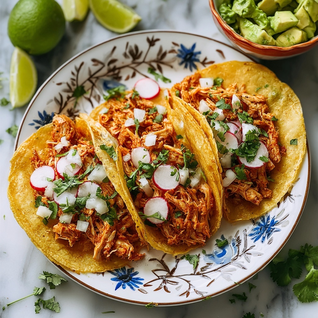 The perfect garnishes can turn this dish from delicious to absolutely unforgettable. Think diced avocado for creamy richness, crumbled cotija cheese for a salty tang, chopped cilantro for herbal brightness, crisp sliced radishes for crunch, and lime wedges to squeeze over for a zesty finish. These toppings not only add layers of flavor but also bring vibrant colors to your taco plate.