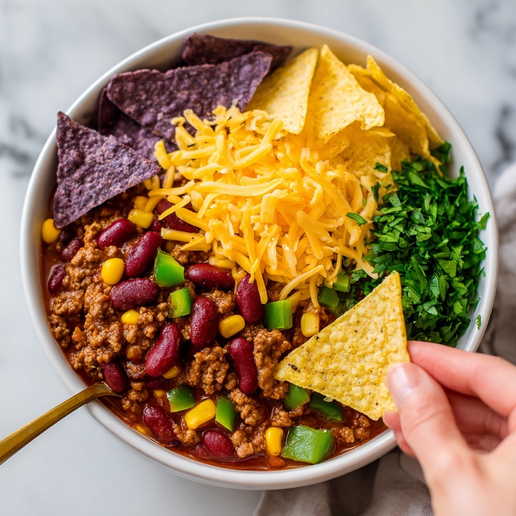 The toppings can truly elevate your bowl. Consider sprinkling shredded cheese for creamy richness, a dollop of sour cream for tanginess, fresh cilantro for a burst of herbal freshness, or creamy avocado slices for a cooling contrast. These garnishes not only enhance the flavor but make your chili look irresistible.