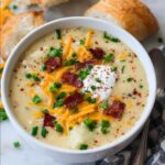 Top your soup with additional sour cream, extra bacon, shredded cheddar, or chopped chives for that finishing flourish. These garnishes personalize each bowl and add another layer of indulgence.