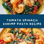 This Tomato Spinach Shrimp Pasta is a quick and flavorful Italian-American dish combining al dente linguine with succulent shrimp, fresh cherry tomatoes, and nutritious baby spinach. Finished with Parmesan cheese, fresh basil, and a splash of lemon juice, this creamy pasta meal is perfect for a healthy weeknight dinner that comes together in just 30 minutes.