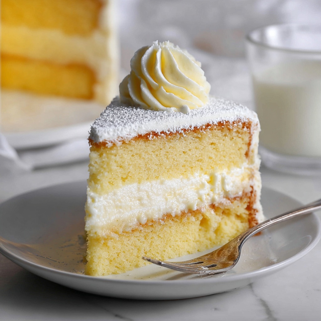 Preheat your oven to 335°F (170°C) and prepare two 8-inch round cake pans with a grease and parchment paper lining — this helps achieve flawless cake releases every time. Sift together the cake flour, baking powder, and salt to ensure an even rise and airy crumb. In a separate large bowl, cream the room temperature butter with the granulated sugar until it turns pale and fluffy — this creates a light texture. Add the eggs one at a time, beating thoroughly after each to incorporate maximum air. Blend in the vanilla extract next for that signature aroma. Alternate adding dry ingredients and room temperature milk, starting and ending with the flour mixture, mixing just until combined to avoid toughening the batter. Pour evenly into the pans and bake for about 30 to 35 minutes, checking doneness with a toothpick. Let the cakes cool slightly before turning them out onto wire racks to cool fully.