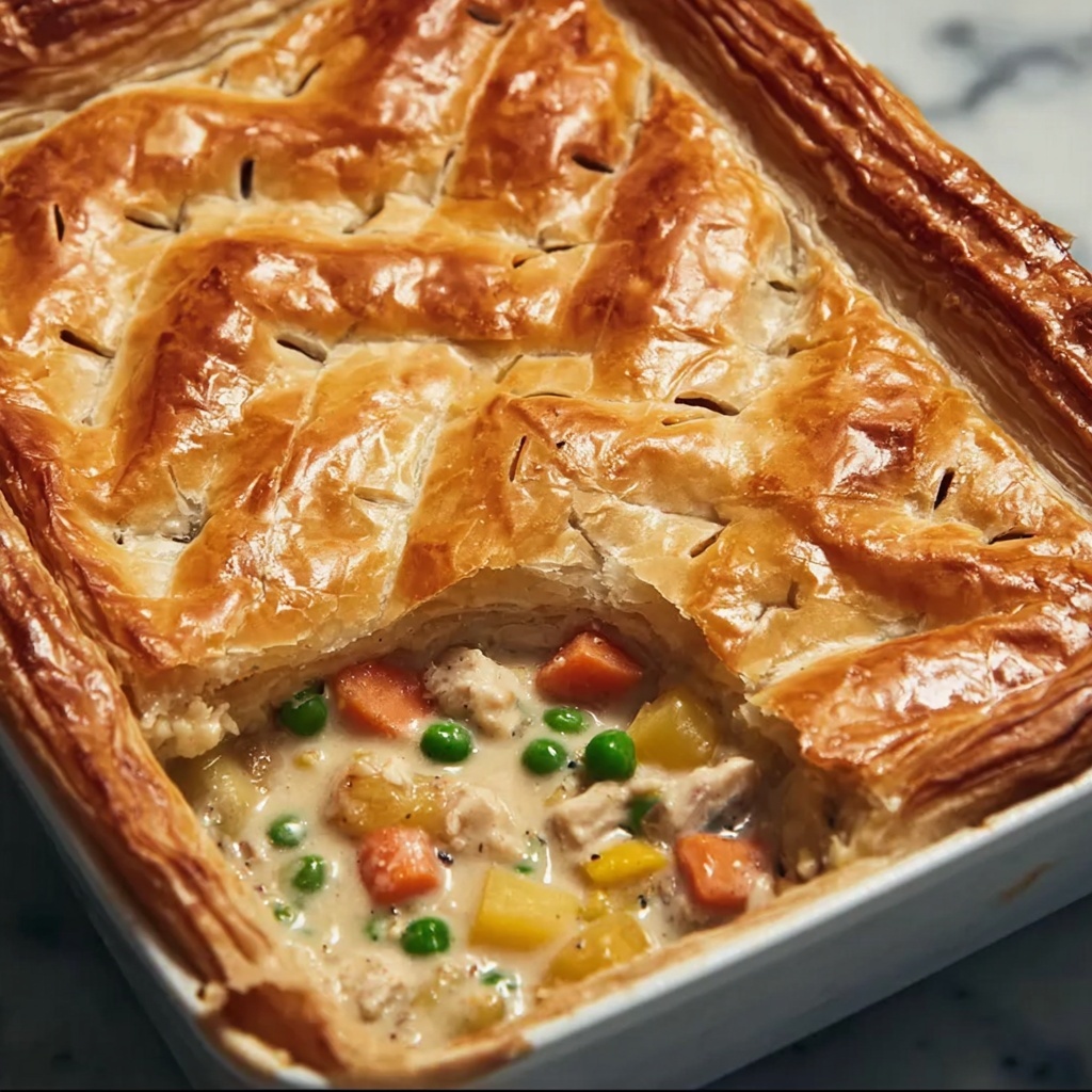 A comforting and hearty Vegetable Pot Pie featuring a medley of tender vegetables in a savory creamy sauce, all encased in a golden, flaky puff pastry crust. Perfect as a wholesome vegetarian main course for any season.