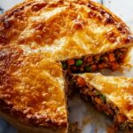 This Vegetable Samosa Pie is a delicious Indian-inspired savory pie featuring a spiced vegetable filling of potatoes, peas, and carrots encased in flaky puff pastry. Perfect as a vegetarian main course, it combines warm spices like cumin, coriander, and garam masala for authentic flavor.