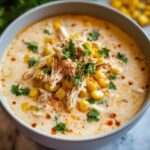 The magic of White Chicken Chili – A Hearty & Flavorful Comfort Meal Recipe truly shines through its garnishes. A handful of fresh cilantro gives a fresh, citrusy note that contrasts the creamy chili, while shredded cheese adds melty richness. Creamy avocado slices bring buttery softness, and crunchy tortilla chips offer a delightful textural surprise. Each garnish adds its own character and makes the dish even more inviting and special at the table.